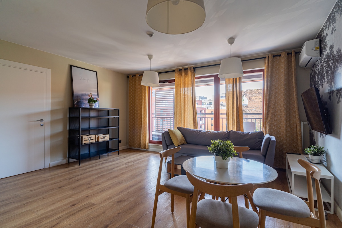 Moderne 36 m2 studielejlighed med en stilfuld entresol og balkon. Perfekt til 2 personer. Lejligheden har fuldt udstyret køkken, badeværelse med bruser, queensize Murphy-seng og en mezzanin med 2 enkeltsenge. Håndklæder og sengetøj stilles til rådighed i lejligheden. Ejendommen har adgang til luksuspool, sauna og fitnesscenter. Populære interessepunkter i nærheden omfatter Grønne Port, Lange Bro og Neptunfontænen. Den nærmeste lufthavn er Gdańsk Lech Wałęsa Lufthavn, 14 km fra lejligheden.
