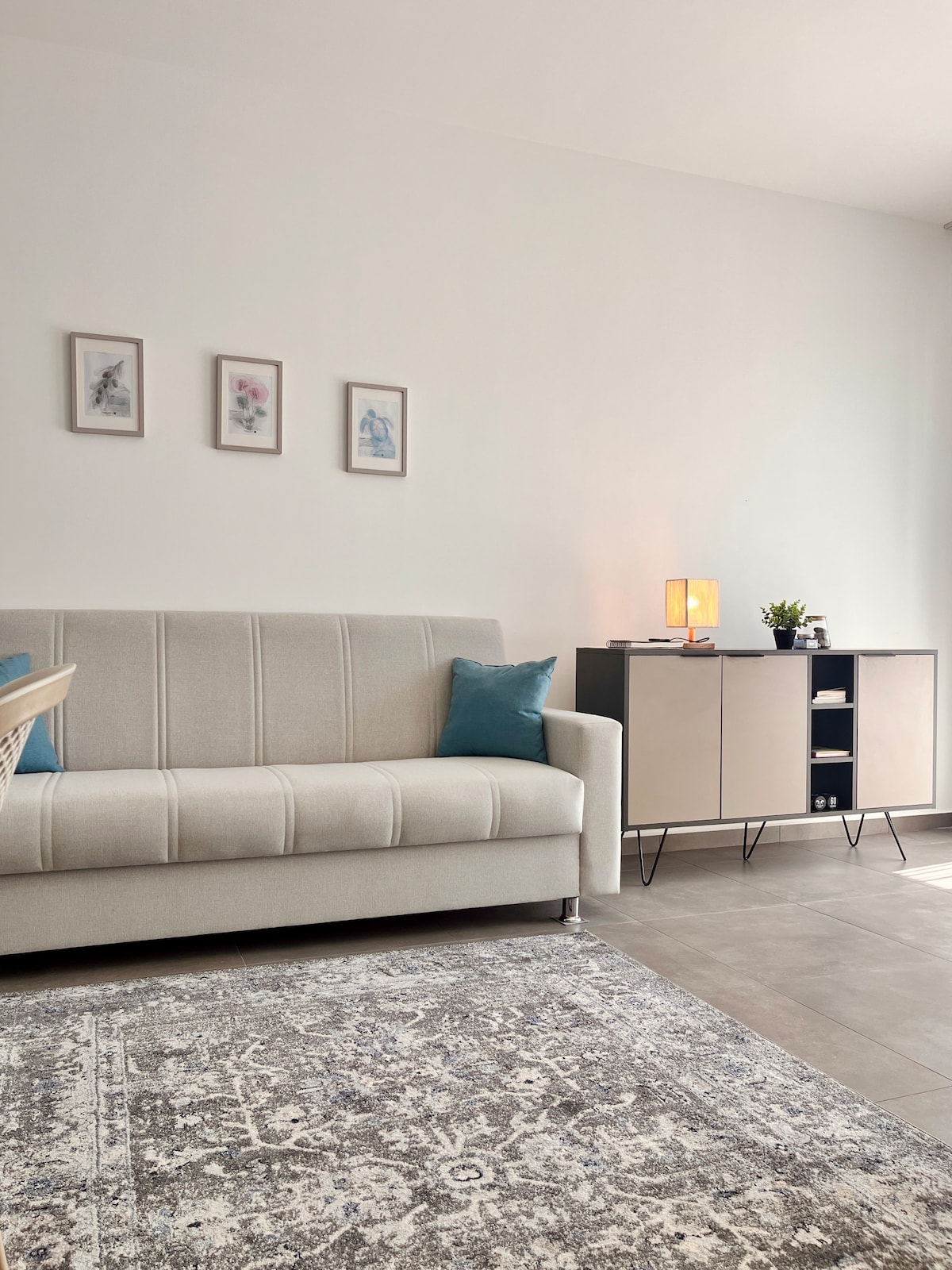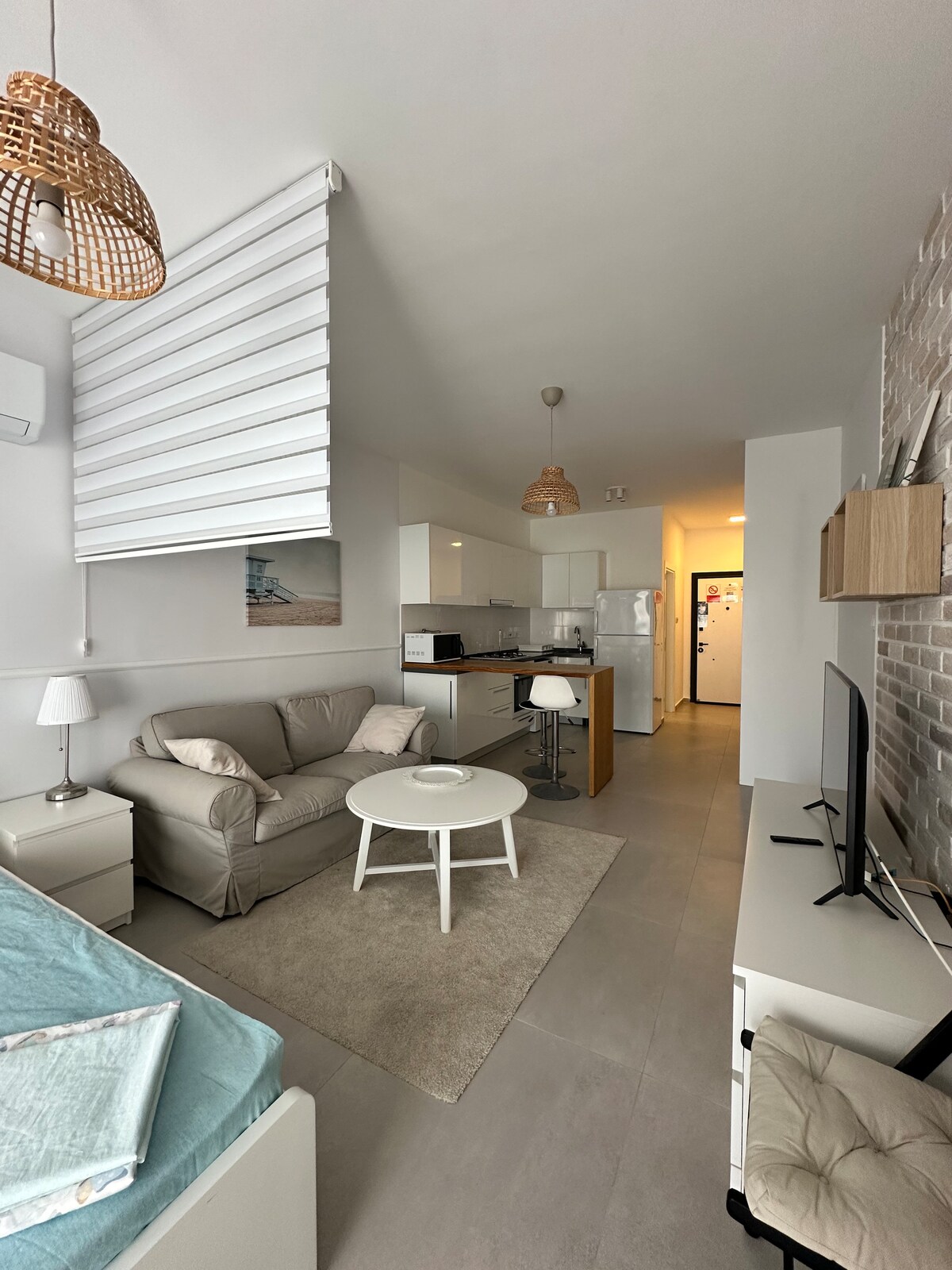 Lejlighed 🌊 i boho-stil kun 200 m fra havet og restauranter. Udstyret køkken, Netflix, aircondition og balkon. Gratis adgang til pool, sauna, hammam, fitnesscenter, tennisbane, legeplads og meget mere. Supermarkedet ligger kun 100 m væk og er åbent dagligt fra kl. 7.30–22.30. Perfekt beliggenhed for både afslapning og eventyr - med nærliggende kasinoer og vilde æsler ved havet, der går ved siden af din bil. Et helt unikt ophold venter.