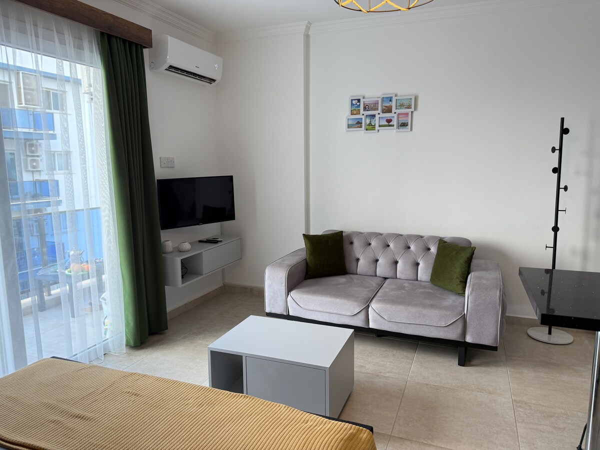 Vi er Daniela og Nikolay – og vi er glade for at byde dig velkommen til vores kærligt designede studie. Lejligheden ligger i Cove Garden Phase II i Sun Valley Resort nær Esentepe – kun få skridt fra havet. Den er ideel til par, små familier eller rejsende på arbejdsferie. Med sit enkle design, komfortable møbler og et strejf af middelhavsro er vores studie et særligt sted at slappe af – uanset om du slapper af eller arbejder med udsigt.