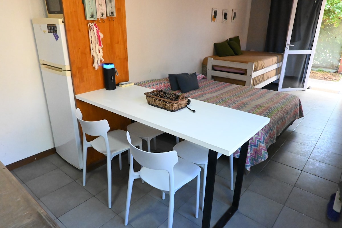 Komfortabel og udstyret loft i hyttekompleks med pool i et rum med stor ro og afslapning. Ideel til par, det har også en ekstra barneseng. Fuldt udstyret, det tilbyder et fremragende alternativ tæt på attraktionerne i Mar de las Pampas og 600 meter fra stranden. Dit kæledyr er også velkommen!