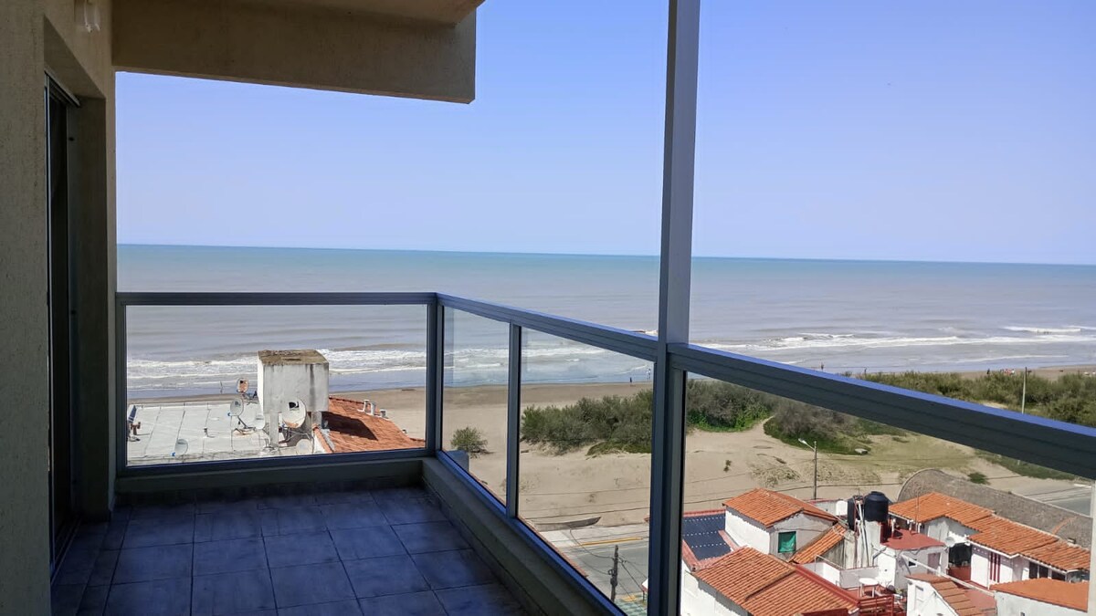 Etværelses lejlighed med fuldt udstyret køkken i den bedste del af Mar de Ajó, lige ved havet og 100 meter fra indkøbscentret. Altan med havudsigt, fuldt udstyret til en familie på op til 4 personer En dobbeltseng og en udtræksseng. Køkken med vaskerum (køleskab med fryser, mikrobølgeovn, el-kedel, brødrister, saftpresser, komplet service og kogeplade/ovn med naturgas) WiFi, 42" LED-TV med DIRECTV, DVD og mini-komponent. Komplet badeværelse. Liggestole, parasol og strandlegetøj.