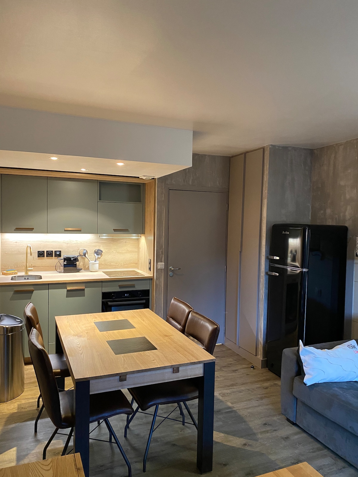 Studiolejlighed, der er blevet fuldstændig renoveret i slutningen af 2021/begyndelsen af 2022, hyggelig atmosfære. Med en smuk udsigt over Aravis-kæden og skiløjperne i Crêt du Merle. Landsbyområde, roligt, men tæt på butikker. Du kan beundre denne smukke udsigt fra den sydvendtede balkon, denne 20m2 lejlighed kan rumme 3 personer. Meget veludstyret og funktionelt studie.
