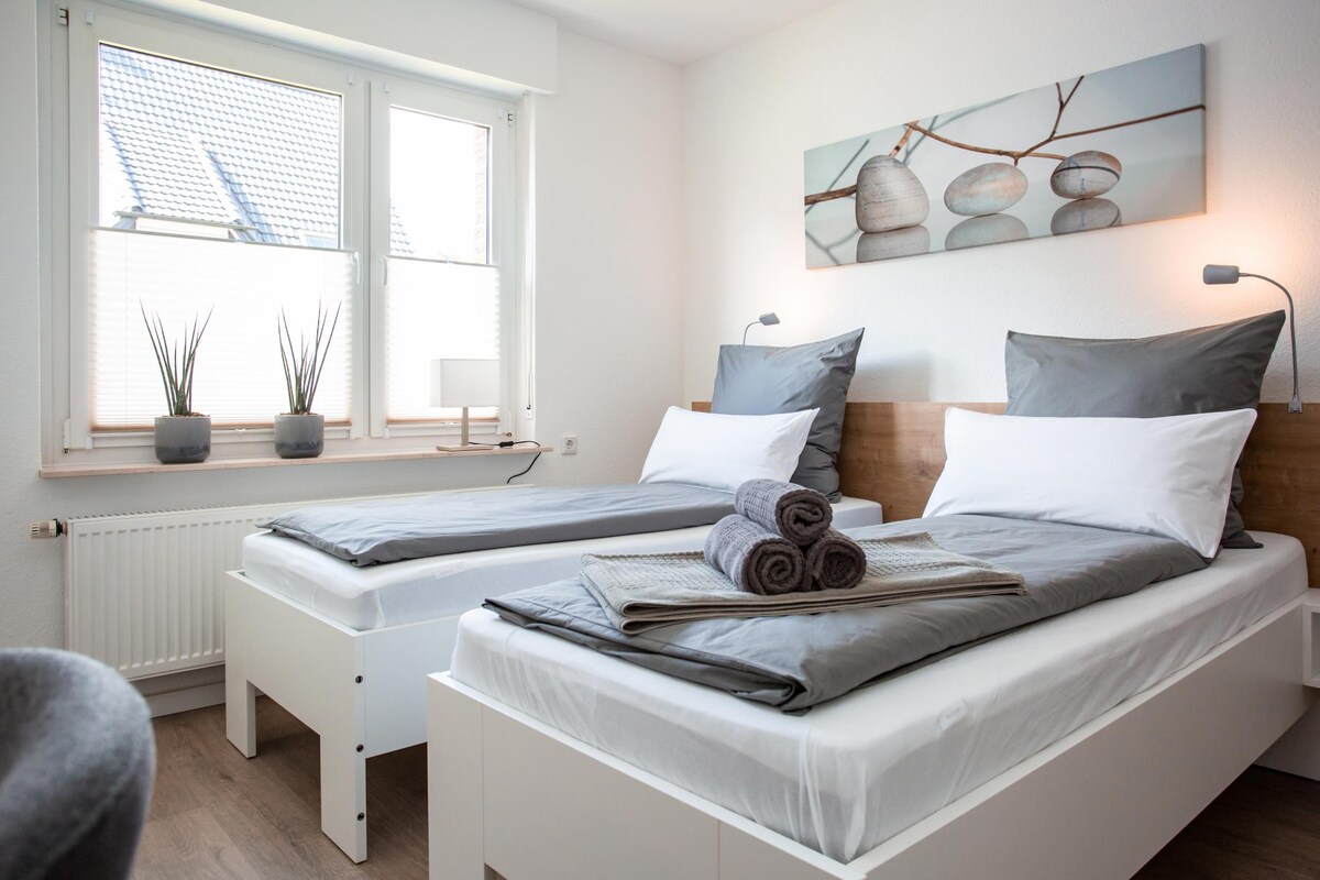 Welcome to the Apartment Oesede-Süd This beautiful apartment is located in Georgsmarienhütte, Oesede-Süd district, in a quiet residential area in a cul-de-sac. The closeness to nature gives them many opportunities for activities. Explore the Teutoburg Forest by bike / on foot or take a relaxing trip to Osnabrück, Ibbenbüren, Münster or Bielefeld. Shops in town, Bus stop 5-, train station 20-minute walk
