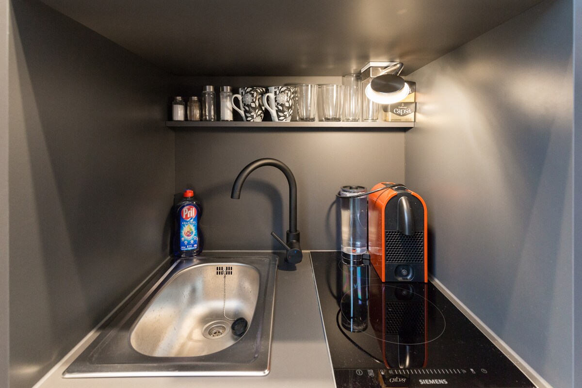 Den moderne boligenhed består af upcycling oversøiske containere. De kasserede fragtcontainere har fundet et nyt hjem hos os - en sikker havn i Wertheim. Fra den kreative upcycling idé, ikke kun vores miljø fordele, men også dig. Tiny House tilbyder dig alt, hvad du kan forvente af et moderne mikrohus på 26m². Et tekøkken, en privat terrasse, en oplyst parkeringsplads lige uden for hoveddøren og den gode følelse af at bo i dit eget hus.