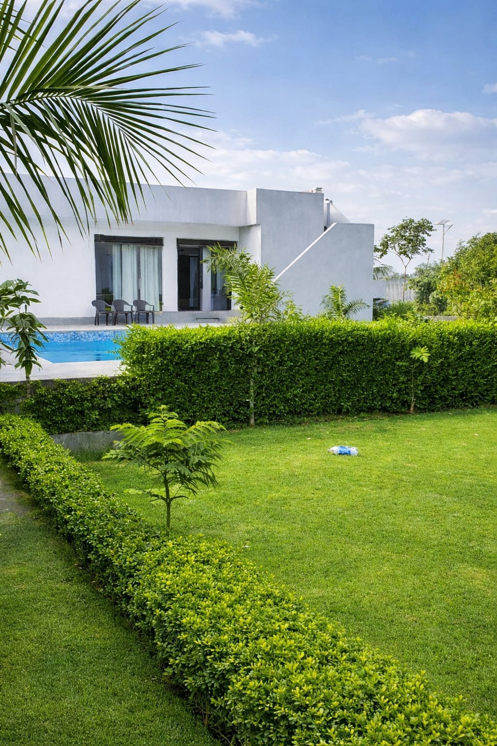 “Relax and enjoy quality time with your family and friends at Asquare Farmhouse. Surrounded by lush greenery, this peaceful property features a spacious lawn, a clean swimming pool, and open areas ideal for stays, parties, and celebrations. Perfect for birthdays, pool parties, haldi-mehendi functions, weddings, and festive gatherings like Holi.”