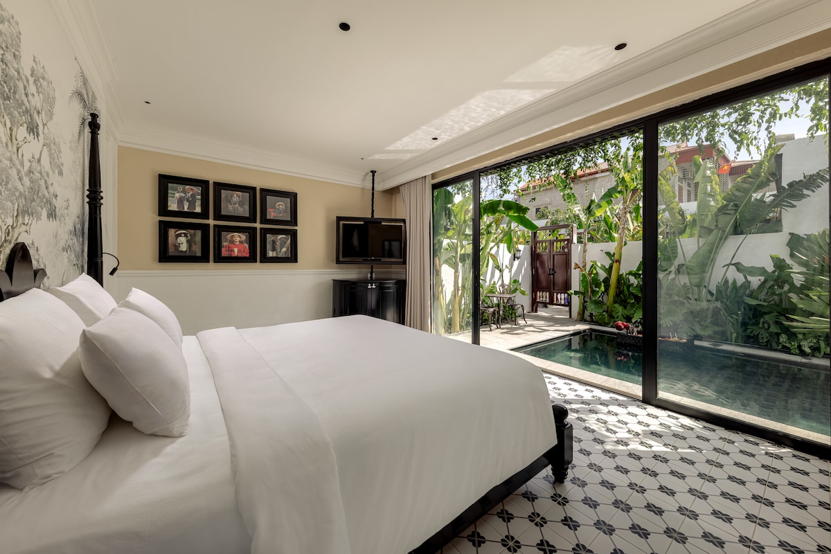Separat designet suite på 65 m² med komfortabel kingsize-seng, privat pool omgivet af grønne områder og åben veranda – ideel til afslappende morgener. Store glasdøre åbner op til have- eller bjergudsigt og lukker naturligt lys ind. Fuldt airconditioneret værelse, fladskærms-tv, minibar og rummeligt badeværelse med udsigt over haven. Gæsterne kan nyde en unik morgenmad lige ved poolen eller bare slappe af og læse på verandaen.