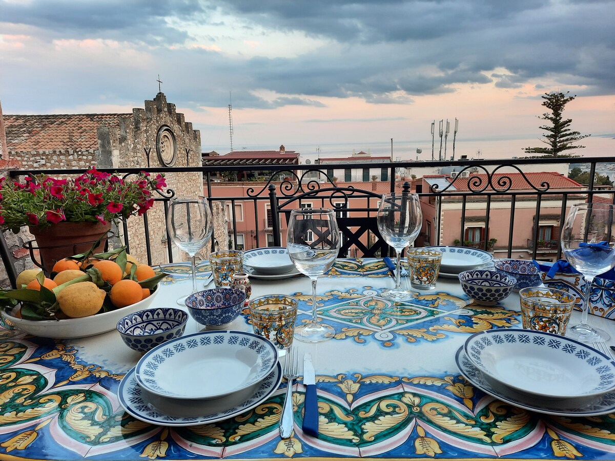 Leder du efter en lejlighed i Taormina med en betagende udsigt og i centrum? TaoView lejligheden ligger to minutters gang fra Corso Umberto, byens hovedgade, men i en forhøjet position, der giver en fantastisk udsigt over havet og det antikke teater. Indretningen er elegant, og inde i lejligheden finder du alle bekvemmeligheder for et afslappende og ubekymret ophold. Alt det pragtfulde i Taormina lige ved hånden, uden at opgive roen.