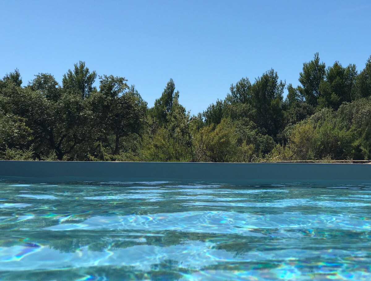 Beliggende i en fuldt renoveret provencalsk bondegård fra det 18. århundrede tilbyder jeg en suite, der består af et soveværelse, et soveværelse beregnet til børn eller et par venner, et designer badeværelse, en lille stue, der kan bruges til morgenmad, men også til arbejde og modulmøder efter behov, en have, en lukket parkeringsplads og en lille 3m×3m swimmingpool kun til dig, ikke-delt plads