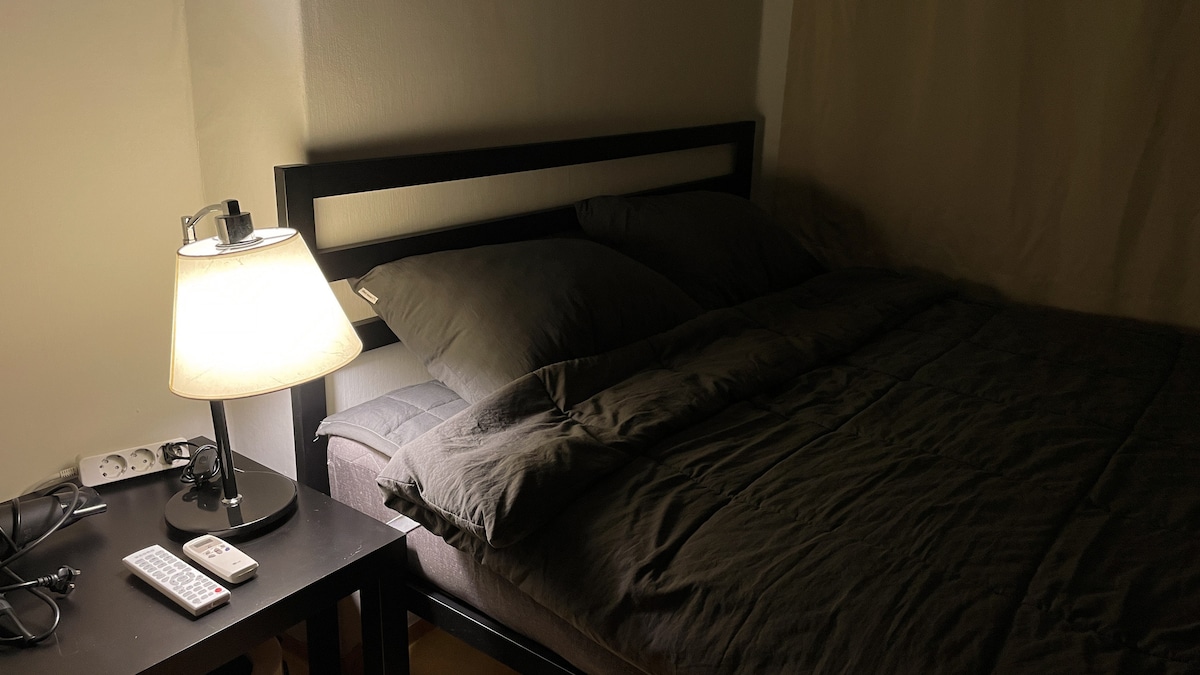 Foran Gwanggyo Grand Convention Center. Sengetøj skiftes hver gang. Aircondition på Suwon Convention Center