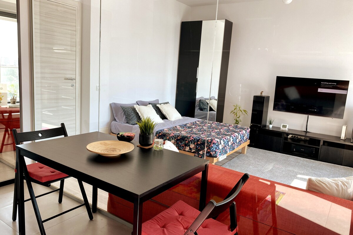 Et helt nyt studie, friskt, rent, med et moderne design og en fantastisk udsigt over byen, beliggende i et nyt boligkompleks. Studiet ligger kun 4 minutters gang fra metrostationen 1 Decembrie 1918, ved siden af bygningen har vi supermarkedet Lidl, Auditorium Pallady og nem adgang til A2-motorvejen. Der er også gratis underjordisk parkering under dit ophold. Inde i den hyggelige lejlighed har vi smart-tv + Netflix, gratis wi-fi samt andre ting, der er nødvendige for at gøre dit ophold perfekt.