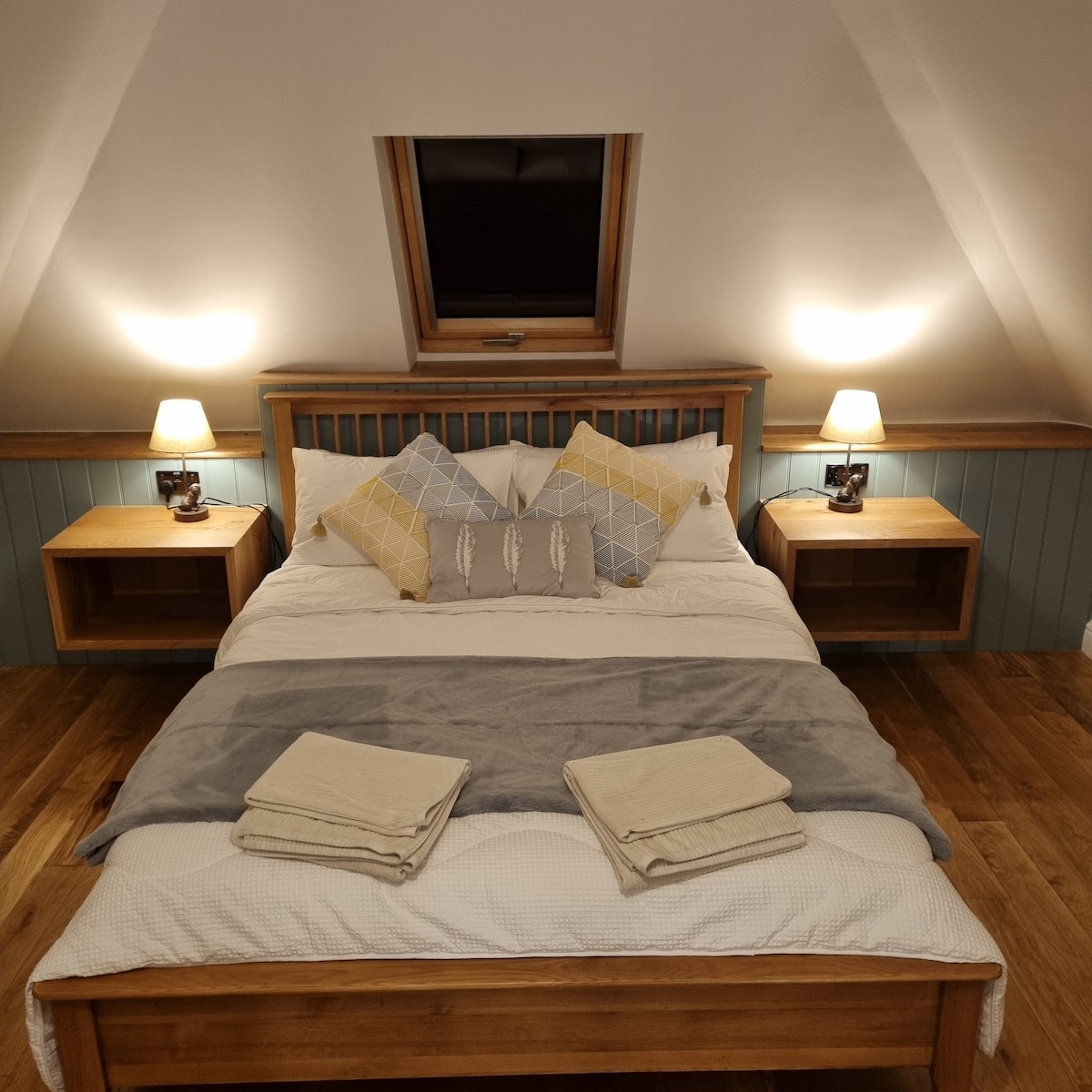 Our hand built bespoke huts offer a luxurious and spacious living space to relax. Quality fixtures and fittings feature throughout. Located in beautiful countryside, stunning views and its amazing wildlife can be appreciated in the daytime and star gazing at night. An internal bathroom with double size power shower will ensure a luxurious experience. Its character wood stove will keep you cosy all year round. Luxury items: Handmade kitchen, Dab/Bluetooth radio, DVD / TV and Nespresso machine.