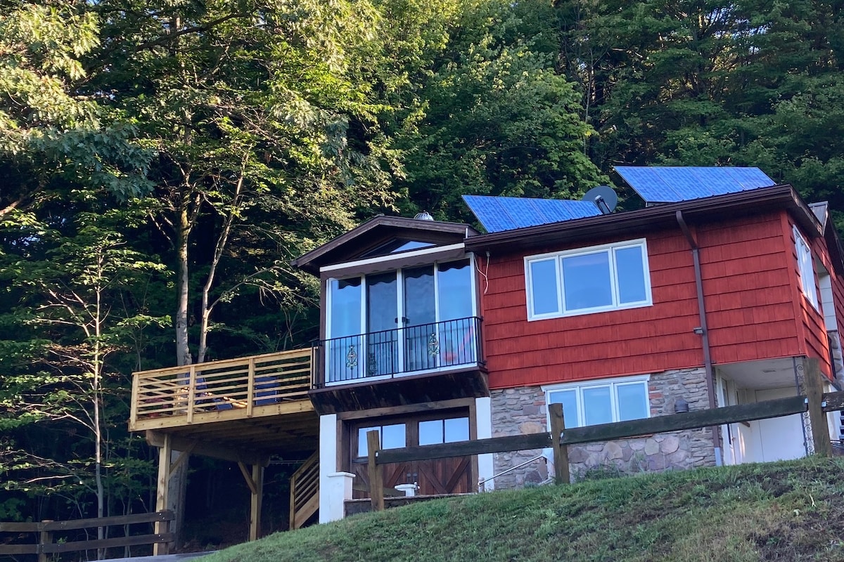 Nyrenoveret hytte med to soveværelser og to badeværelser med fire personers sauna ved Swinging Bridge Reservoir, Sullivan Countys største motorbådssø. Opdaterede faciliteter og moderne møbler fra midten af århundredet giver et velkomment pusterum fra byen kun 160 km væk. Nyd det lokale landskab, se et show i Forestburgh Playhouse, eller stop ind i nogle af de lokale vingårde og restauranter. I en afslappet weekend kan du hænge ud ved pejsen og spille nogle plader og tilberede et måltid.