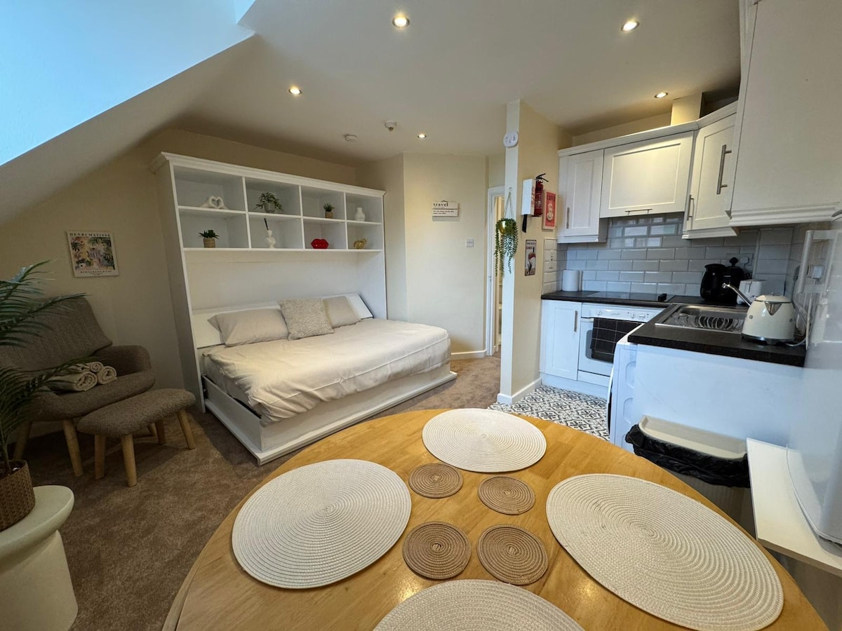 Denne gennemtænkte lille lejlighed ligger i hjertet af Dundrum og udnytter hver eneste centimeter. Det er perfekt til solorejsende eller arbejdende fagfolk og har en komfortabel enkeltseng, et fuldt udstyret køkken til hjemmelavede måltider og et privat badeværelse – alt sammen i dit eget kompakte, selvstændige rum. Du er kun få minutter fra Dundrum Town Centre, LUAS Green Line, caféer, restauranter og lokale parker – men alligevel tilbyder lejligheden et fredeligt, privat fristed fra travlheden.