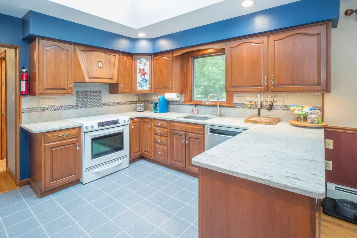 Hyggelig vinterreset i Clifton Park – perfekt beliggenhed for nemme ture til Saratoga Springs, Albany, Troy og Schenectady. Synk ned i en blød kingsize-dobbeltseng, slap af i badekarret, og afslut dagen ved pejsen under lyskæder. Uanset om du er her for en rolig smuttur, en arbejdsrejse eller et længere ophold, får du komfort, privatliv og plads til virkelig at slappe af. Udendørs filmskærm: "tilgængelig, hvis vejret tillader det" + to 65" tv indendørs til vinternætter.