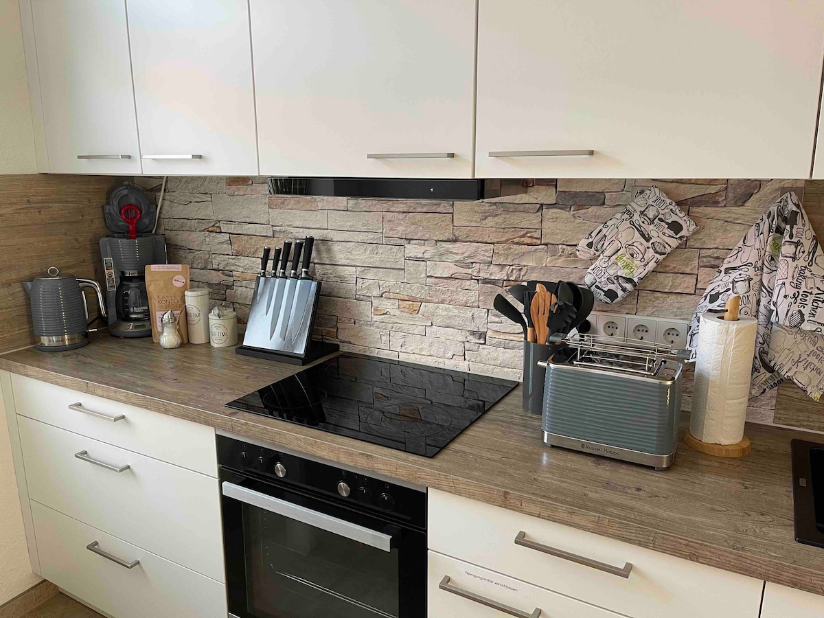 Loftslejlighed 20 minutters kørsel fra Potsdam og Berlin og 30 minutters togrejse fra BER. Rummeligt, fuldt udstyret designkøkken*, badeværelse med Agape Vieques badekar og matchende håndvask *, soveværelse med 2,70 m seng *, fitnessrum kan bruges som en ekstra soveplads. Her er en 1,80 m dobbeltseng*projektor med forudinstalleret app til NETFLIX, Disney + og Amazon Prime-login, legetøj, supermarked med bager og slagter, drikkevaremarked*svømning i søer og vandreture