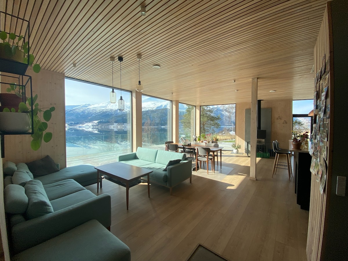 This comfortable cabin are located in the beautiful village Kandal in Gloppen, Sogn og Fjordane. If you are looking for something special, this will be the perfect place. Here you are surrounded by high mountains, a lake, rivers and waterfalls. The area are good for trout fishing, and it's possible for the guests to rent a boat during the summer. If you like hiking, there are many great routs in the area. If you just are looking for silence and beautiful scenery, just sit down and enjoy!