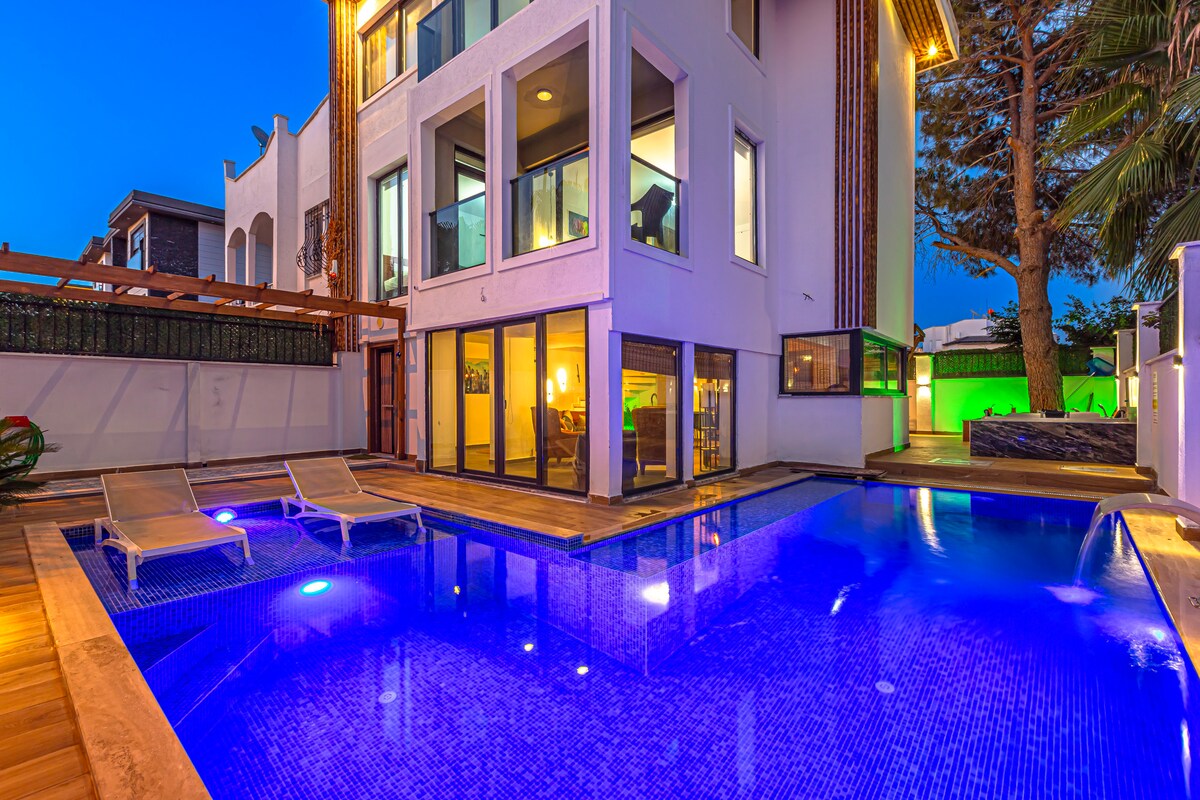 Denne private villa ligger tæt nok på alle vigtige punkter i Antalya-området og gør det nemt at planlægge din rejse. Et skridt væk fra poolen, to minutter fra Legends Land of Legends, fem minutter fra havet og 25 minutter fra Antalya lufthavn, en luksuriøs, komfortabel og fredelig ferie. Min villa har pool, sauna og boblebad, som kan bruges året rundt. Da min pool har et varmesystem, kan du nyde den udendørs pool, selvom du planlægger en ferie om vinteren.