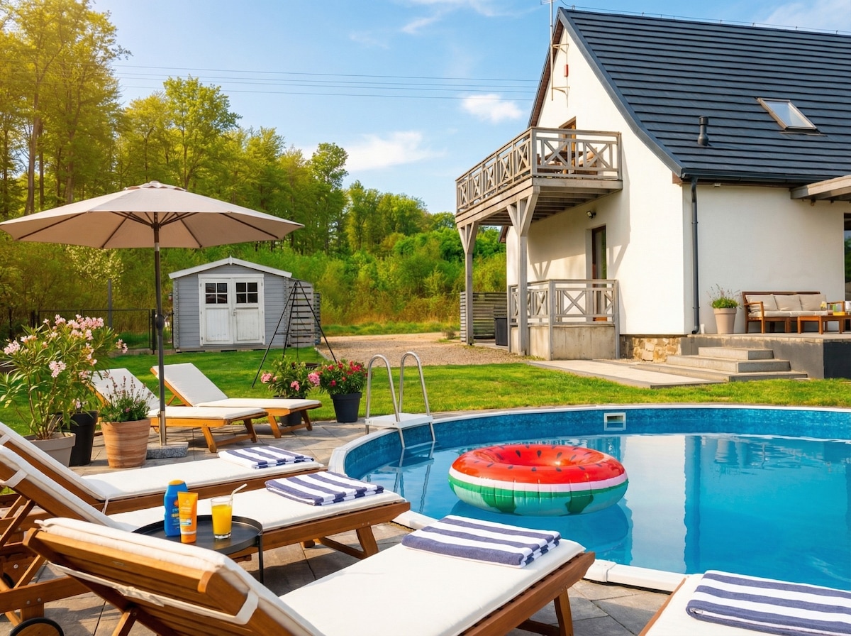 Stedet er omgivet af skove og søer. Ejendommen har en privat have, sauna, russisk bad og legeplads, grill, havebod og terrasse. Et godt sted at bo med din familie. Huset ligger i nærheden af feriestedet "na Gwizdówka", som vores gæster har adgang til. Resortet har udlejning af vandudstyr, en restaurant, en bar, en bowlinghal og en abelund. Lake Sacred, hvor huset ligger, har en privat strand og en mole med bænke.