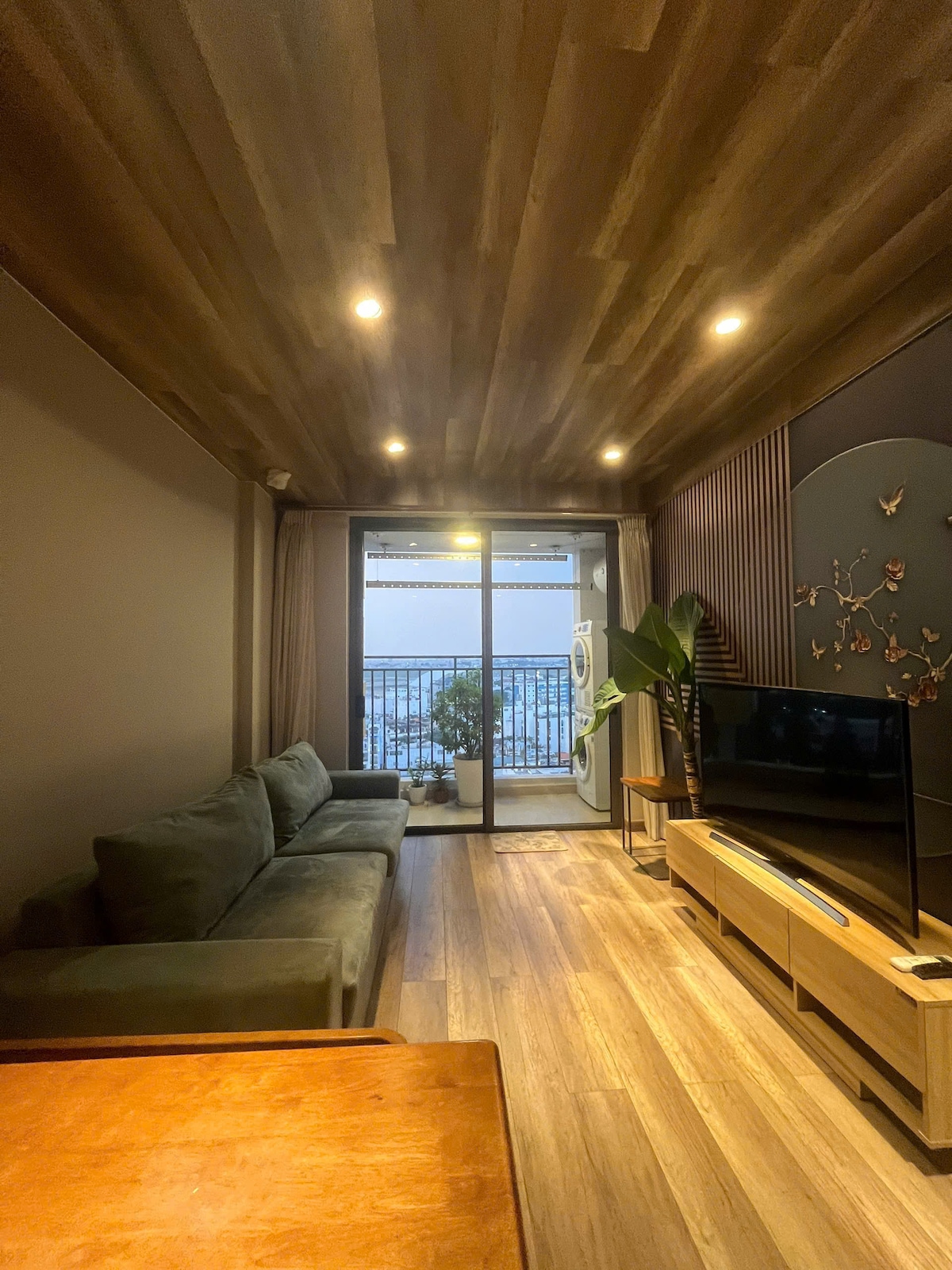 Welcome to TheA Home. The apartment is on the 15th floor, with a cool balcony with airport view - Location: Only 5 minutes to the international airport, 15 minutes to the center - Near by: Local restaurants & a big park, Phuc Long Coffee, Wayne Coffee, Highland Coffee, ATM and convenience stores (7 Eleven, winmart,...) within 5' walking - Private apartment entrance, nice gym, infinity swimming pool, BBQ area - Shop Cleaning and laundry services in the building.