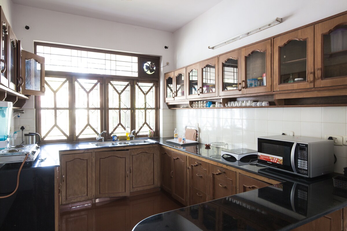 Utsav Orchard Retreat – A Serene Escape Denne skovhytte på 1000 kvm ligger i en 2 hektar stor mangofrugtplantage i Loliem og tilbyder 2 soveværelser med aircondition, et fuldt udstyret køkken, en rummelig hal og en åben gårdhave i Goan-stil. Kun 6 km fra Galjibag og Polem strande, er det perfekt til en fredelig smuttur eller arbejde med højhastighedsbredbånd. Ideel til familier eller grupper på fire, og kæledyr er velkomne. Vågn op til fuglesang og Goan-brødssælgere i dette rolige tilflugtssted væk fra turistmængderne.