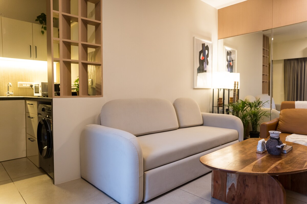 Bo med stil på Acron Seawinds, North Goas førende kompleks. Denne moderne lejlighed kombinerer komfort og bekvemmelighed med adgang til to store pools, fitnesscenter, sauna, jacuzzi, spilområde og legeplads. Det lukkede område tilbyder sikkerhed døgnet rundt, elevatorer, ladestation til elbiler og overdækket parkering. Kun 10 minutters gang til Tito's Lane og 1 km fra Baga Beach. Det er det perfekte fristed for par, solorejsende eller længerevarende ophold, der søger en luksuriøs, men forbundet oplevelse.