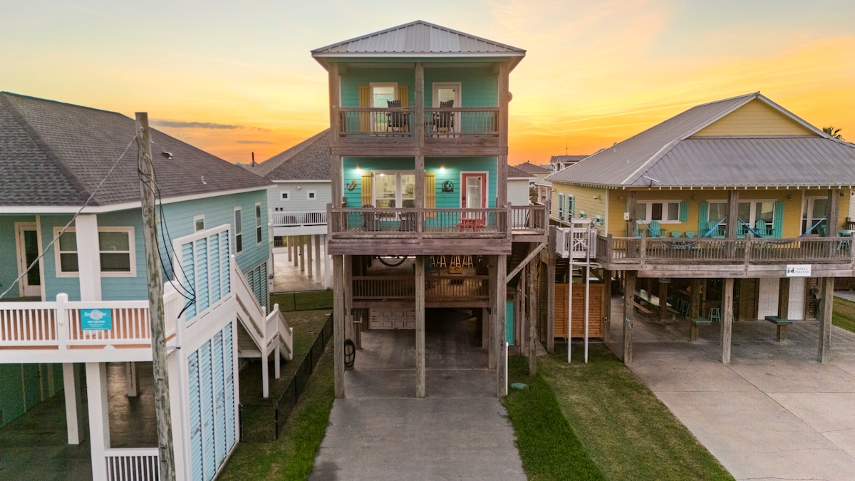 BEACHSIDE BLISS er en luksuriøs og fantastisk hytte beliggende kun få skridt fra stranden, der tilbyder en betagende panoramaudsigt over havet. Dette luksuriøse hjem er fantastisk til familiesammenkomster, hvor du kan nyde den friske havbrise og den beroligende lyd af bølger. Balkonen giver spektakulær udsigt over solopgang og solnedgang og er ideel til at se Galveston-lys om natten. Kom og tilbring lidt tid her @ BEACHSIDE BLISS!
