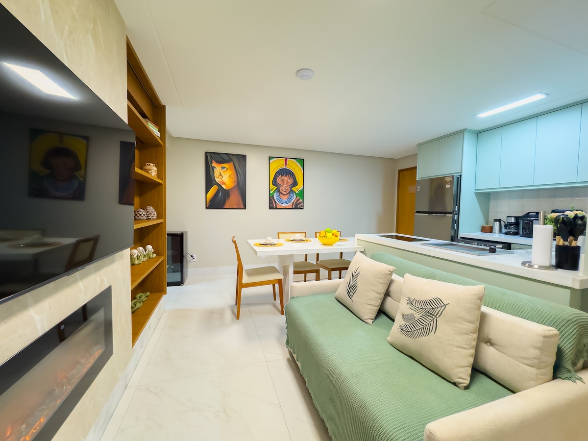 Nosso apartamento é perfeito para quem busca conforto, praticidade .Conta com 2 quartos, 2 banheiros, ambientes super aconchegantes e decoração moderna e elegante, pensado em cada detalhe para o seu bem-estar. Totalmente equipado com todos os utensílios necessários, oferece roupas de cama , garantindo noites de descanso com muito conforto. No prédio temos : • Restaurante com serviço de café da manhã (pago à parte) • Piscina • Mercadinho para pequenas compras • Recepção 24 horas