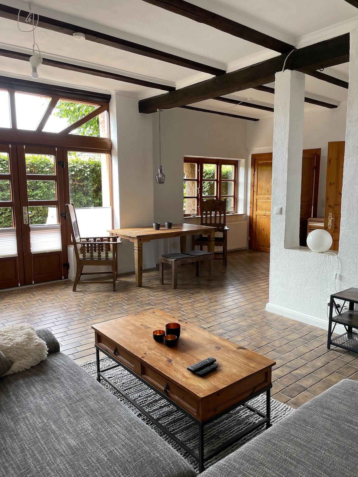 The house lies not far from the Nord-Ostseekanal. We have a terrace and a garden to spend time and make breakfast in open air, if the wheather allows it :-) It's available for groups, families and cyclists. Till now the bathroom only can be reached through the doublebed-room. We're searching for another solution. In 125 qm you have much space. Shops for daily needs are nearby. And there are many possibilties for day trips.