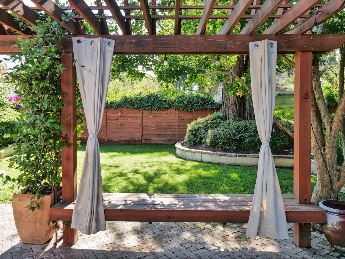 Hendricks House er et æstetisk mesterværk i hjertet af East Sacramento. Træbeklædte gader og smuk arkitektur giver mulighed for dejlige gåture til caféer og kaffebarer. Vores hjem blev bygget i 2020 og tilbyder det bedste af gammeldags design med alle de moderne faciliteter. Tæt på tre regionale hospitaler, CSUS og statens Capitol. To soveværelser, et fuldt udstyret køkken, vaskemaskine/tørretumbler, gaskamin og parkering på stedet gør det perfekt til en familie, en romantisk ferie eller forretningsrejse. Maks. = 4
