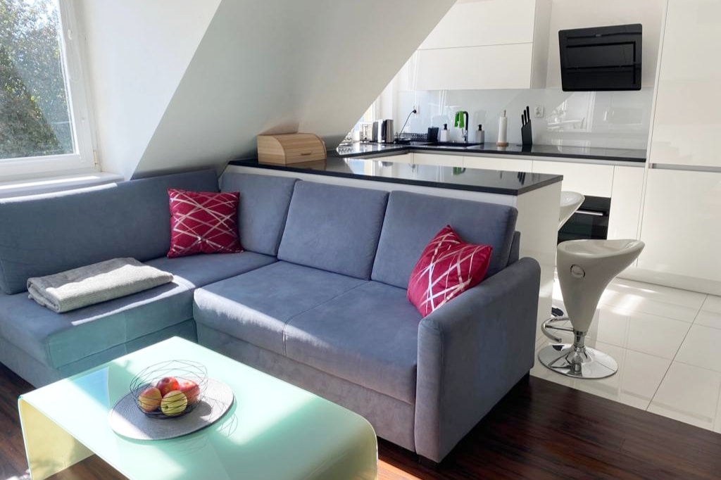 Vi har 3 vidunderlige lejligheder i en rolig beliggenhed med udsigt over skoven og enge. Samtidig er du kun omkring 600 meter fra den hvide Østersøstrand, den smukke promenade og det berømte vartegn på Usedom, molen. De mange indkøbsmuligheder, butikker, restauranter og turistinformation kan nemt nås til fods. Lejligheden er 35 m² med en stue/spiseplads, soveværelse, brusebad og en smuk terrasse med loungemøbler og sol indtil de sene aftentimer.
