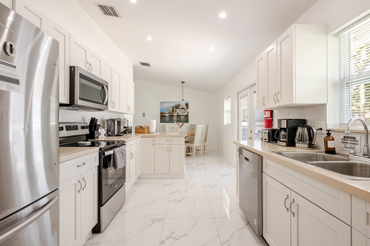 Opvarmet pool, grill, 3 soveværelser, 4 minutter til stranden og Delray