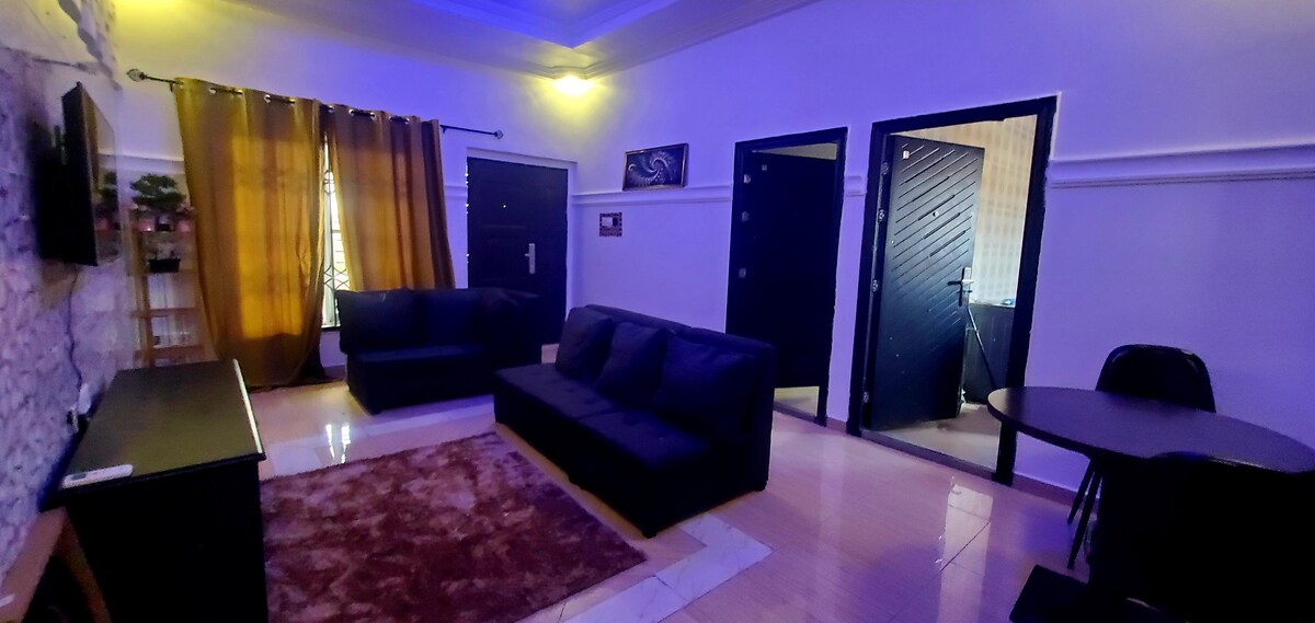 Nyd et fredeligt ophold i denne fuldt møblerede 2-værelses lejlighed, der ligger i Kasoa, Krispol City, kun 2 minutters gang fra Accra–Cape Coast Highway. 20 km eller 20 minutters kørsel til West Hills Mall - Weija. Uanset om du rejser i forretningsøjemed eller som privat, tilbyder dette hyggelige tilflugtssted både komfort og bekvemmelighed. Lejligheden har moderne møbler, basisting og forbedret sikkerhed med seks overvågningskameraer rundt omkring i ejendommen, så du kan have ro i sindet under hele dit ophold