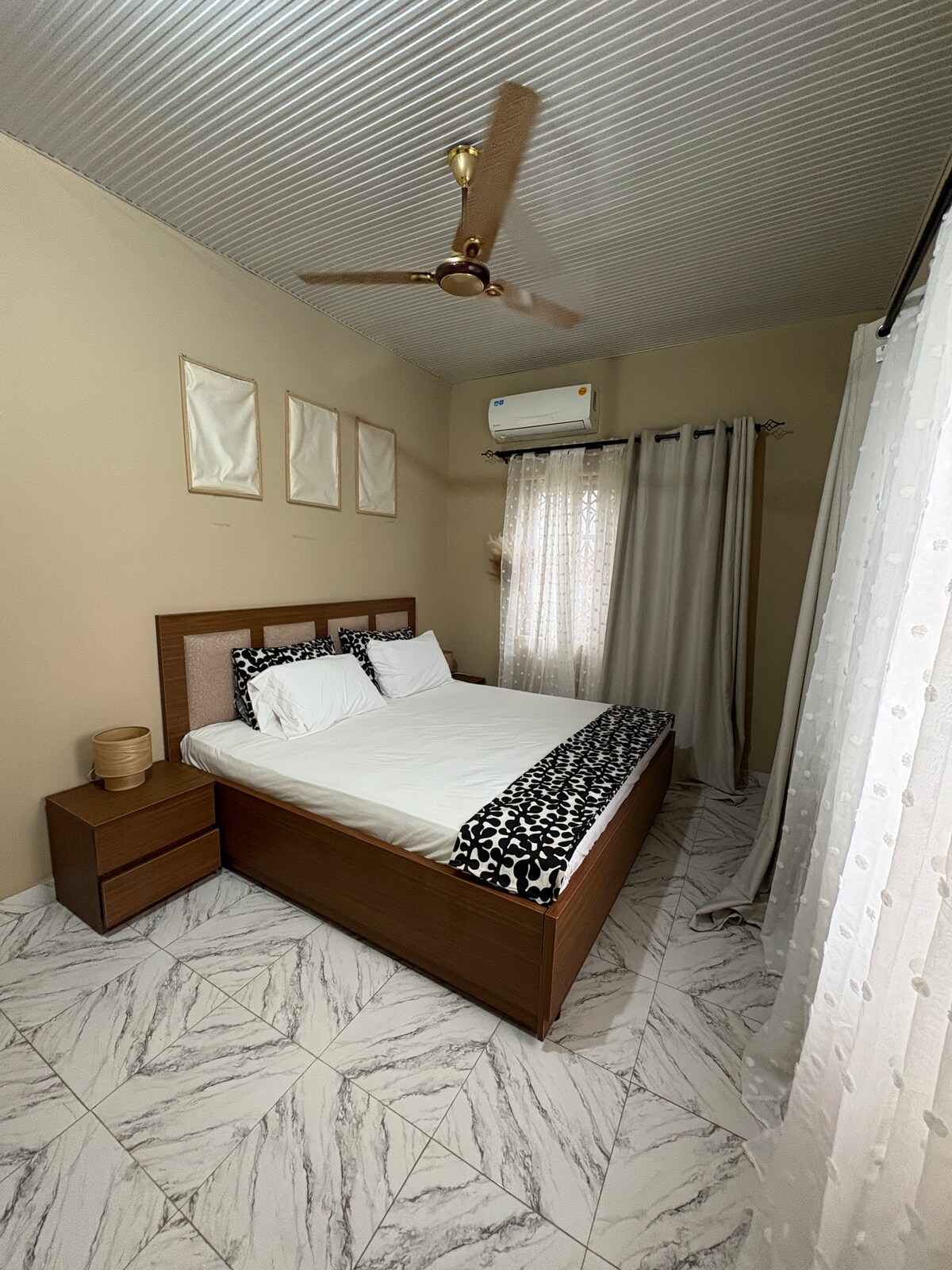 Dette stilfulde overnatningssted er perfekt til gruppe-/ individuelle rejser. En ideel ferie-, forretnings- eller præ-bryllupsdestination. Skab glade minder på dette unikke og familievenlige sted. Nyd frisk brise fra den nærliggende sø, og slap af i haven. Nyligt installerede solpaneler giver backup. ACC lufthavn ligger ~45 minutters kørsel derfra, og Kokrobite Beach ligger ca.15 minutters kørsel derfra . Vi tilbyder afhentning i lufthavnen og en køretur rundt i byen under opholdet mod et ekstra gebyr. Prisen er for 1-2 gæster plus 15 dollars/ekstra gæst .