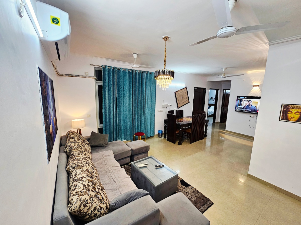 Enjoy a peaceful stay in our bright 2nd-floor flat, perfect for unwinding in Lucknow. The space includes a comfy bedroom, a spacious living area, two clean washrooms, a workstation, large sofa-couch sets, TV, WiFi, and a well-equipped kitchen for easy cooking. Surrounded by greenery, it’s a calm retreat with quick delivery access and a grocery shop just 2 minutes away. Ideal for relaxing, working, or exploring the city at your own pace. Note this on 2nd floor with stair access (no lifts).