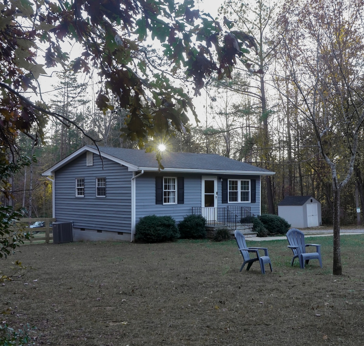 Vores hjem ligger i det historiske Louisa County i det centrale Virginia på en skovbevokset grund på fem hektar, der vender ud mod South Anna River. Richmond ligger 30 minutter væk, og Charlottesville ligger mindre end en time væk. Hele det nederste niveau i vores bolig bruges til Airbnb. (Vi bor på øverste etage.) Indretningen er "hjemlig" med nogle personlige ejendele. Børn, kæledyr og rygning er ikke tilladt. Internettet er hurtigt, og mobiltelefoner fungerer med wi-fi-opkald. Madleveringer er ikke tilgængelige på grund af vores afsidesliggende beliggenhed.