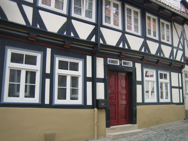 Dejlig lille hytte kun til dig, ideel til par, singler, 5 minutters gang til centrum, kejserpaladset (Kaiserpfalz), 15 minutter til stationen, ingen børn, kæledyr, stearinlys, grill, rygning (gammel by/Unesco). stejlere trappe til 1. sal, bad (bruser) og gang (stueetagen). Ikke for handicappede gæster. Gardiner, persienner undtagen badeværelse (mælkeagtigt glas, have). Nøgleskab. Egen aflåselige kælder (2 slæder, til cykel, ski), hvis det er nødvendigt. Tæt på alle seværdigheder, vandreture, svøm (Herzb. Teich). Tæt på bjerge.