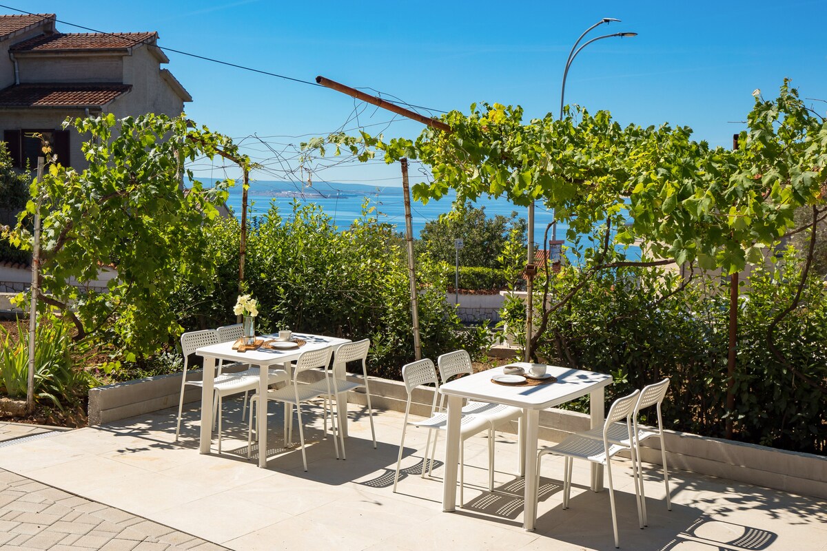 Denne moderne bolig er det perfekte valg for familier såvel som for dem, der rejser i grupper, og den ligger i Kostrena, mellem Opatija og Crikvenica, i umiddelbar nærhed af byen Rijeka. I nærheden er der en lang promenade, der strækker sig 3 km langs havet og har flere typer strande, såsom store stenstrande, små intime strande i bugter, betonstrande og særlige strande til hunde. Kostrena er et roligt sted uden meget støj og byens travlhed, og hvis du har brug for at tage til byen Rijeka, er du der på mindre end 10 minutter i bil. Velkommen!