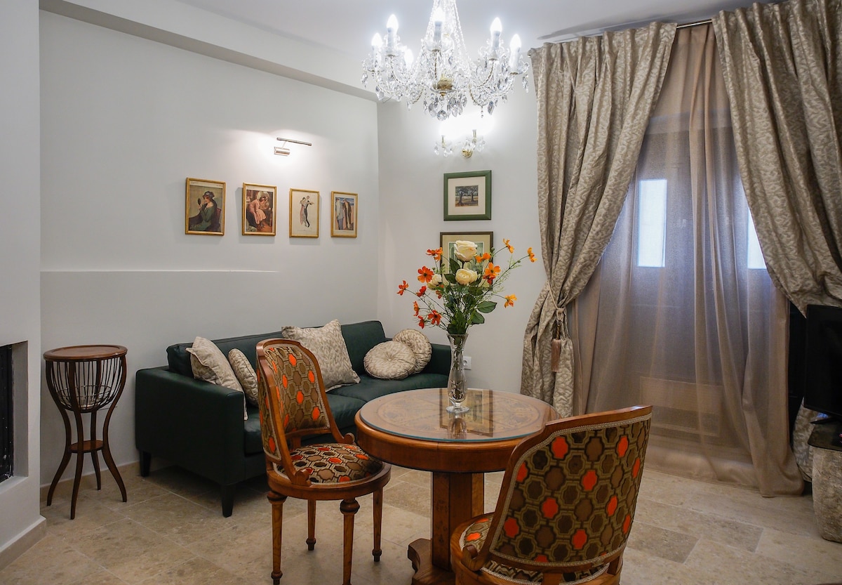 Spacious and airy one bedroom apartment for up to 3 guests.Located in our beautiful stone family house.Ideal for couples,friends and family.The apartment has one big bedroom,private large kitchen and bathroom and private patio area with table and chairs just outside of apartment.Equipped with AC and free Wifi. You will also have unique opportunity to enjoy beautiful view from our main terrace.
