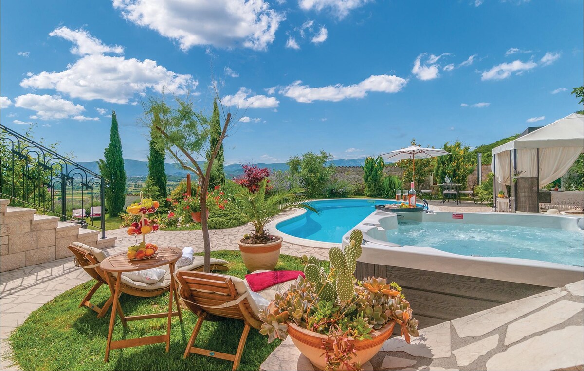 All discounts are already included, please go ahead and book the property if your travel dates are available. Below please see all the listing details The house is placed in small village Ruda near town Sinj. Village is also placed between mountain Kamesnica and river Cetina. Outside area of the house is very big. There is big garden with beautiful view and grill/barbecue, there is 8x4 swimming pool. Terrace in the house is fenced. There is also big garage and three parking spots.