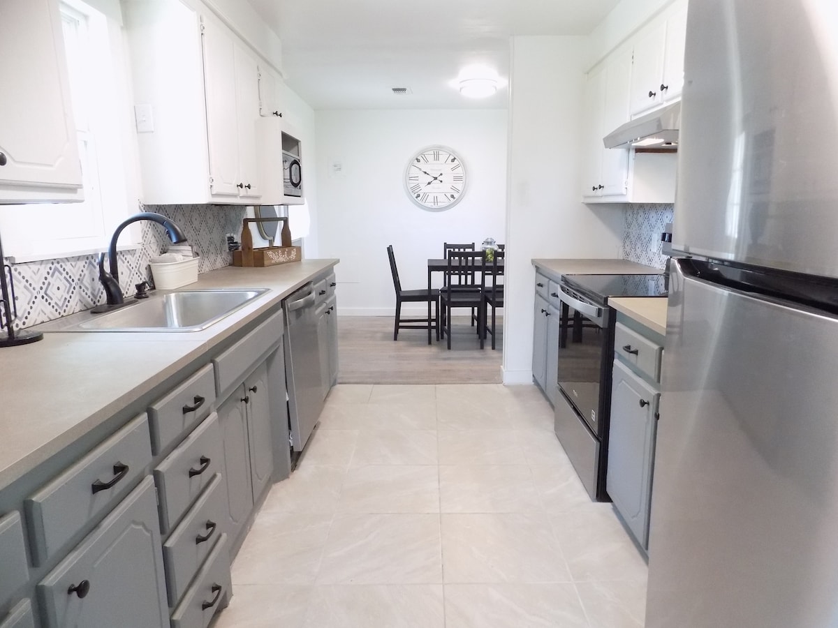 Denne nye bolig blev bygget i foråret 2025. Granitborde og opgraderede gulve overalt. Denne Airbnb-bolig har alt, hvad du har brug for til et behageligt ophold, herunder et velassorteret køkken, 65" tv, sæbe, shampoo og alt andet, du har brug for til et afslappende ophold. Downtown Chickasha ligger kun 11 km væk, hvor du kan finde restauranter, shopping og meget mere. Spørg om vores militærrabat.