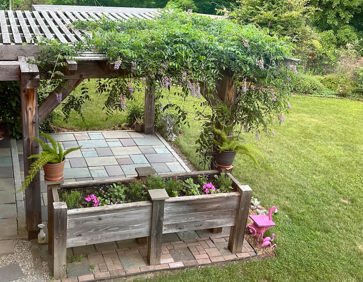 Dette hyggelige gæstehus med ét værelse ligger på en stille gade i den grønne bymidte i Lebanon, NH. Det har en privat indgang med adgang til en dejlig udendørs terrasse og gasgrill. Værelset har højt til loftet, en seng i fuld størrelse, et badeværelse/brusebad og et tekøkken med kaffemaskine, elkedel, mikrobølgeovn, brødrister og kompakt køleskab. En kort gåtur fra restauranter og caféer og 12 minutters kørsel til Dartmouth College. Bemærk, at der ikke er køkkenvask eller komfur.