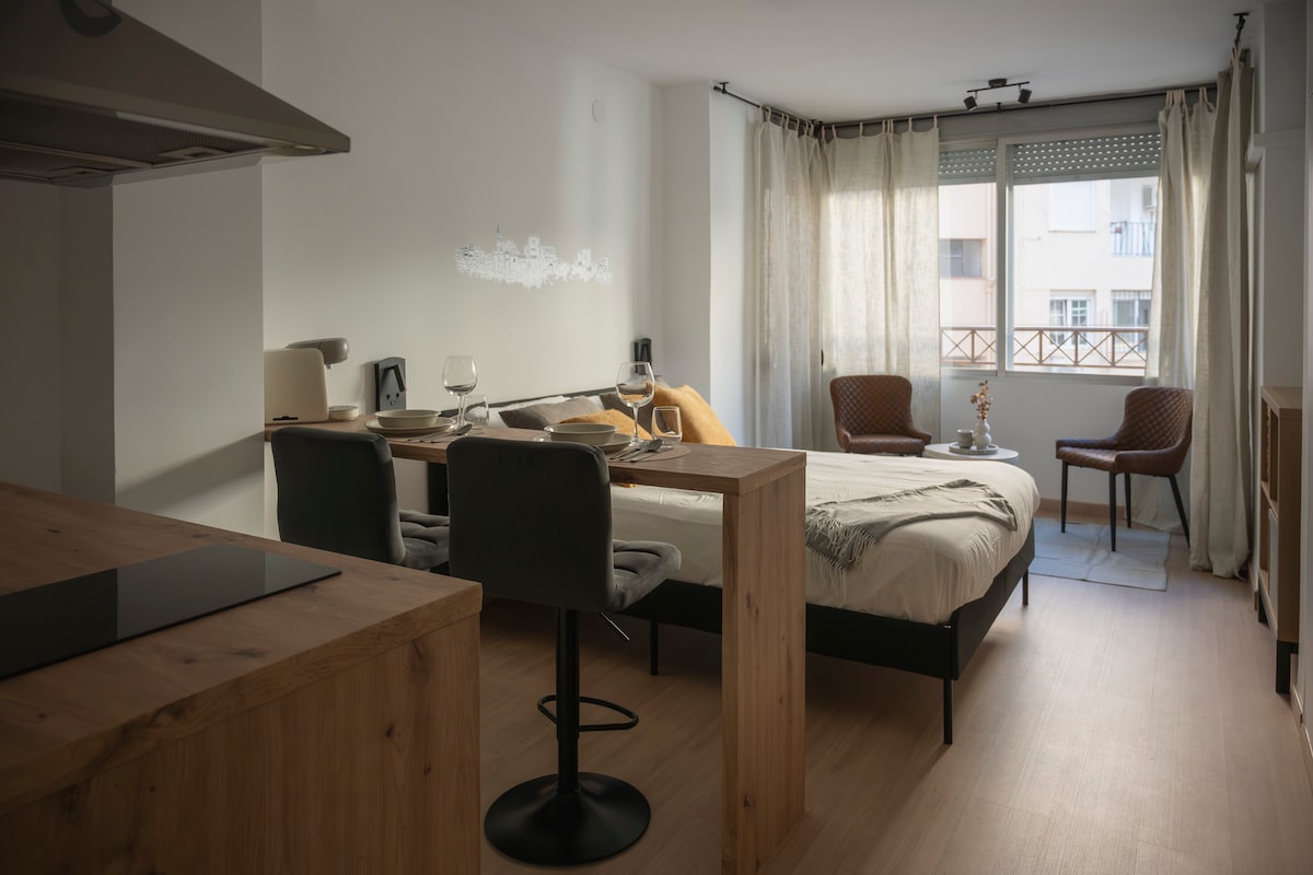 Lys og hyggelig lejlighed i Granada, ideel til par eller rolige ferier. En omhyggeligt indrettet bolig i studiostil med et integreret opholdsområde, en stue og et køkken i varme og funktionelle omgivelser samt et separat badeværelse. Den skiller sig ud på grund af sit naturlige lys og sin sans for detaljer. Den har wi-fi, aircondition og alt, hvad du har brug for til et behageligt ophold. Beliggende i et område med gode forbindelser, kun få minutter fra centrum.