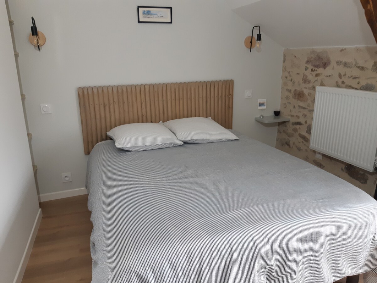 Dette er et gammelt anneks, hvor der blev lavet cider, fuldstændig renoveret på 36 m2 i stueetagen med en svævende mezzaninetage. Boligen er uafhængig og tilbyder alle de moderne bekvemmeligheder i et moderne hjem med alt det nyttige udstyr. Den private park på mere end 5000 m2 er tilgængelig for rejsende, der også kan se geder og får i deres indhegning.