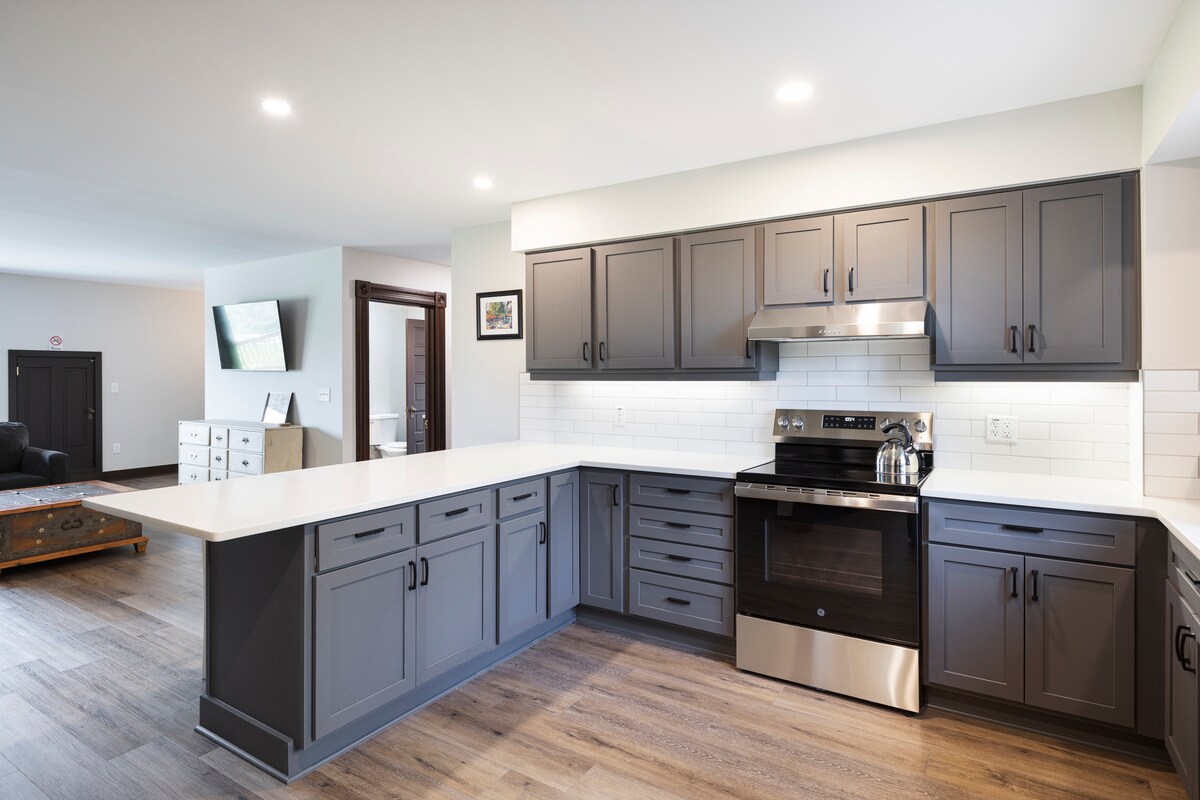 Nyd denne store nybyggede bolig i hjertet af Granville Village og en nem gåtur til Denison University og downtown Granville. Der er en privat indgang med kombinationslås, så du kan komme og gå, som du vil. Privat soveværelse med kingsize-seng; anden dobbeltseng med memory foam-madras i separat område. Parkering uden for gaden til din bil giver nem adgang til indgangen, gadeparkering til ekstra køretøj. Privat terrasse med bord og stole.