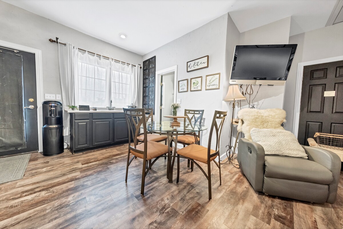 Tekøkken med en Keurig, mikrobølgeovn og minikøleskab/fryser, infrarød kogeplade og redskaber. Bord, siddepladser til fire. En sammenfoldelig Futon kan også fungere som en ekstra seng. Gateway Church, Gaylord, Goosehead, Grapevine downtown, Colleyville, tæt på. Toyota Music Factory, Cowboys stadion, Downtown Dallas 30 minutter væk. Et stort fladskærms-tv med Roku til din foretrukne videostreaming. Det er super stille og privat. 200 mg FIOS internethastighed!