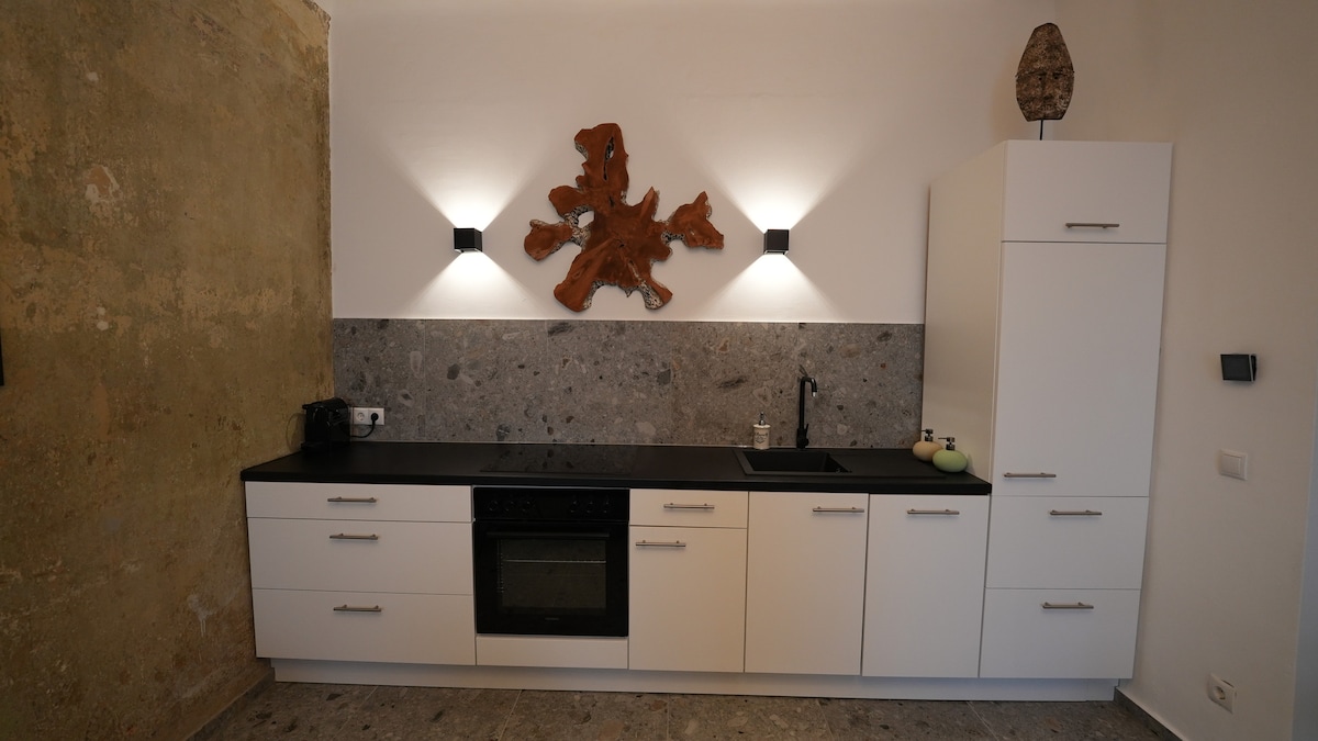 Føl dig hjemme! Den ideelle bolig til dig - uanset om det er til arbejde, besøg på arrangementer eller en bytur med dine kære. Den kærligt indrettede lejlighed i en ældre bygning omfavner dig med sin charme - fra det første øjeblik. Med kærlighed til detaljer er der taget hensyn til alt, hvad du har brug for under dit ophold. Ud over det fuldt udstyrede køkken, den store stue og en moderne arbejdsplads (højhastigheds WiFi) tilbyder lejligheden dig et fantastisk badeværelse med vaskemaskine og tørretumbler.