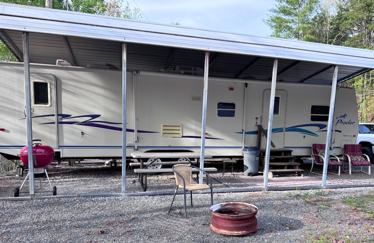 "Smoky Mountain Haven" 36' Creekfront RV med wi-fi