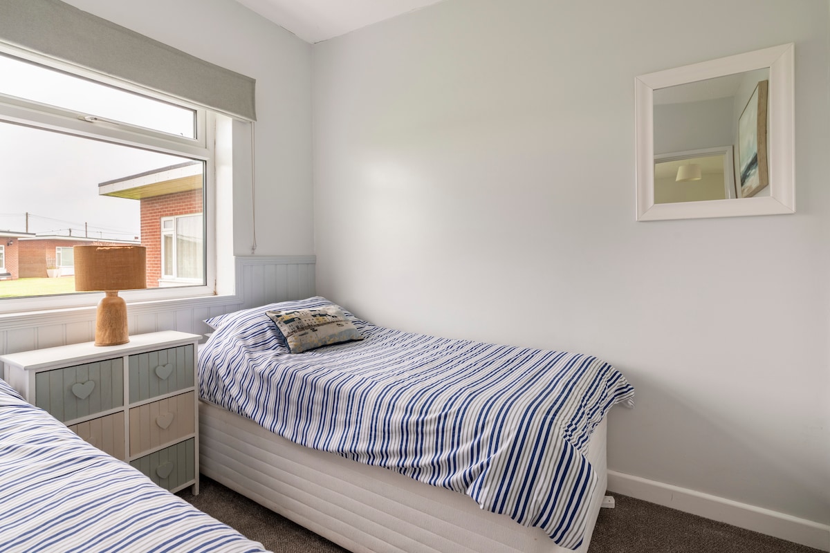 Nyd den store Norfolk-himmel og de brede åbne strande, når du bor i denne rene, attraktive og veludstyrede, kæledyrsvenlige hytte i en rækkehus. 5-10 min. gang til stranden og faciliteter. Håndklæder og sengetøj er inkluderet, ubegrænset gratis wi-fi, opvarmet indendørs swimmingpool (adgangskort inkluderet), gratis parkering. Et fuldt udstyret køkken med elkomfur, mikrobølgeovn, vaskemaskine, køleskab med fryser og alt service og bestik, der er nødvendigt for en familie, der selv laver mad. Chaleten er ikke-ryger.