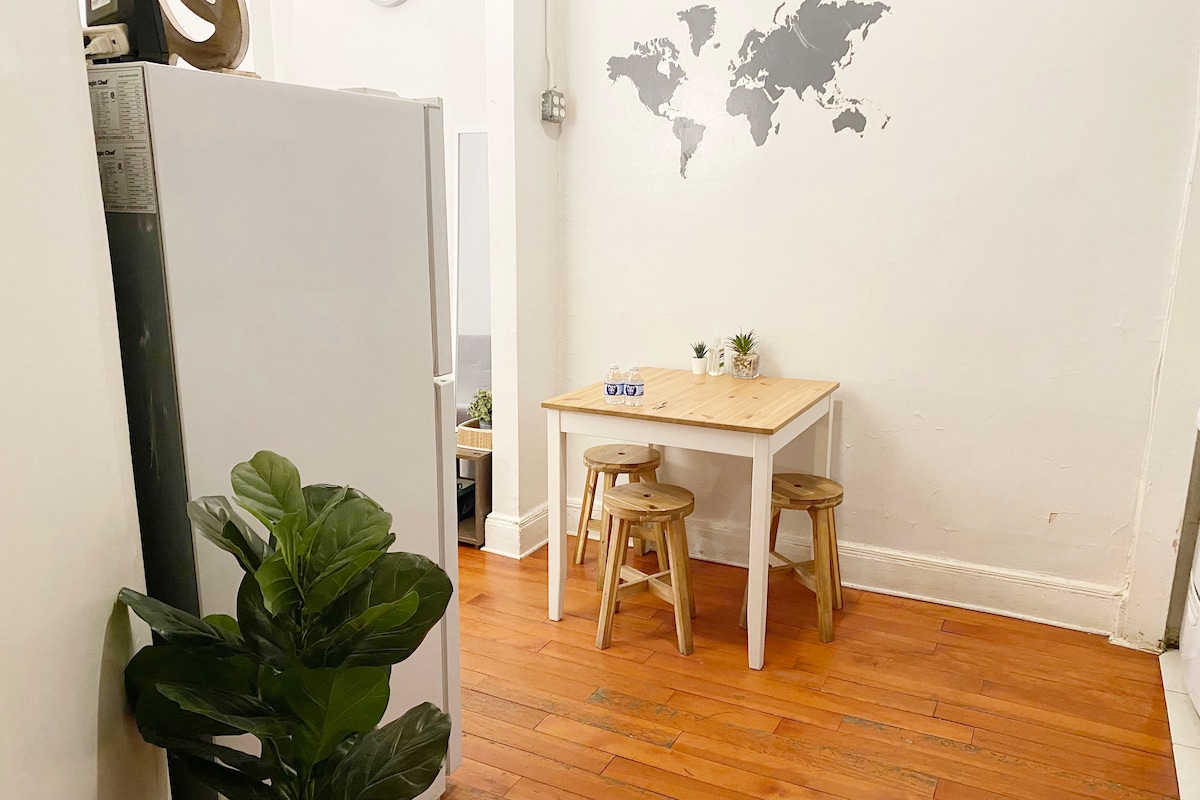 Tillykke med at have fundet boliger i den øverste 1 % på Airbnb med perfekte 5,0-vurderinger af værten. Dit ophold er i charmerende historisk rød mursten fra 1890'erne i et stille eksklusivt nabolag fyldt med trendy butikker, barer og restauranter, der kun findes i Hoboken. Mens du nyder fredelige omgivelser, er du kun en bus, tog eller færge væk fra at besøge NYC, sports- og musikkomplekser, kongrescentre og meget mere. Vi er porten til New York, New Jersey og videre for at fejre 2026 FIFA i vores baghave mindre end 30 minutter væk.