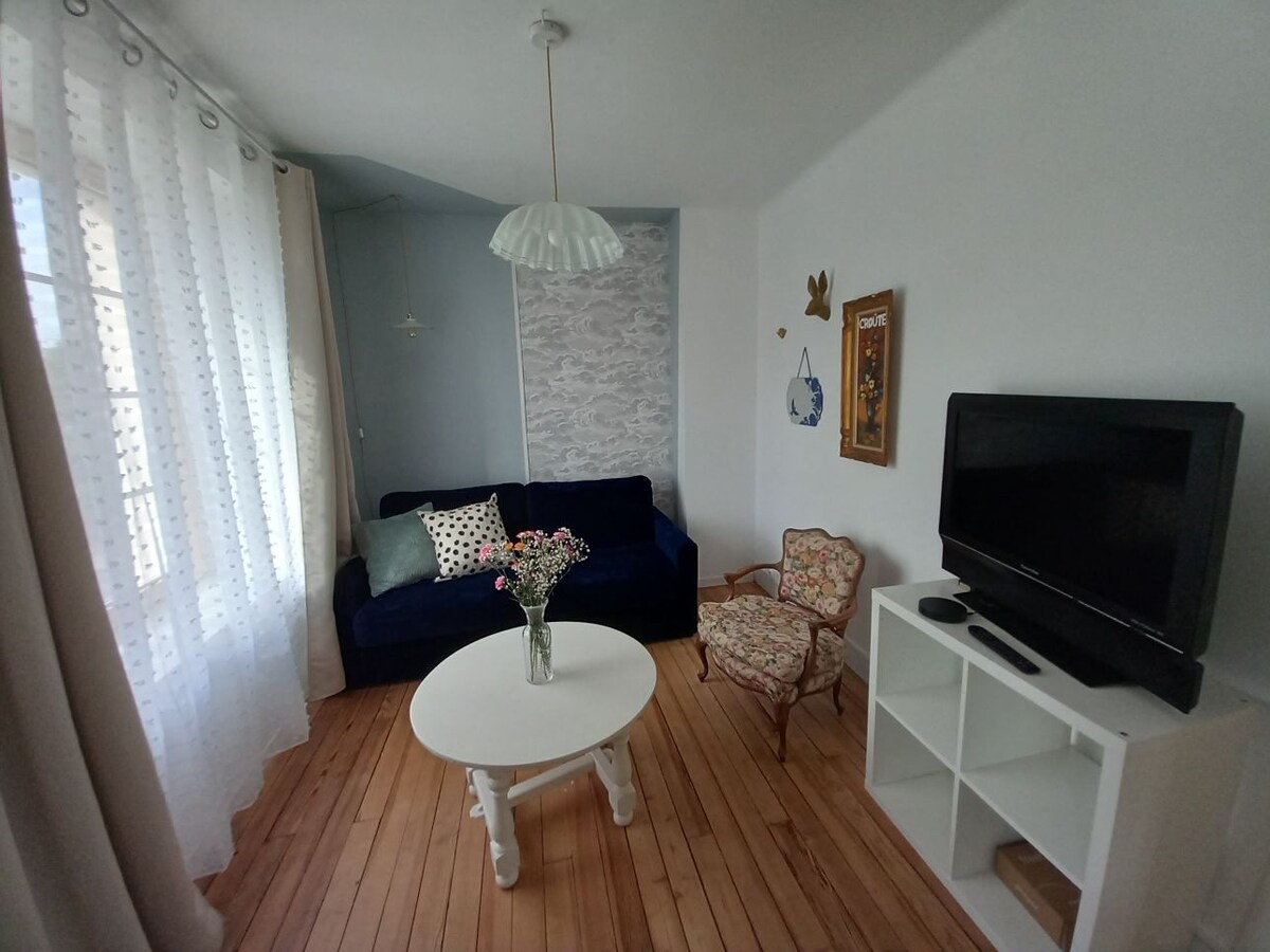 Jeg byder dig velkommen i huset ved siden af mit, renoveret i 2018. Boligen har 2 hovedværelser og ingen trapper. Du kommer direkte ind i stuen med opholds- og køkkenområde. Bagved er badeværelset og soveværelset. Stille kvarter, tæt på centrum til fods (15/20 min) Butikker (bageri, supermarked, tobak) 4 min. Gratis parkering på gaden. Boligen desinficeres fuldstændigt mellem 2 lejere. Rabat på ugeprisen.